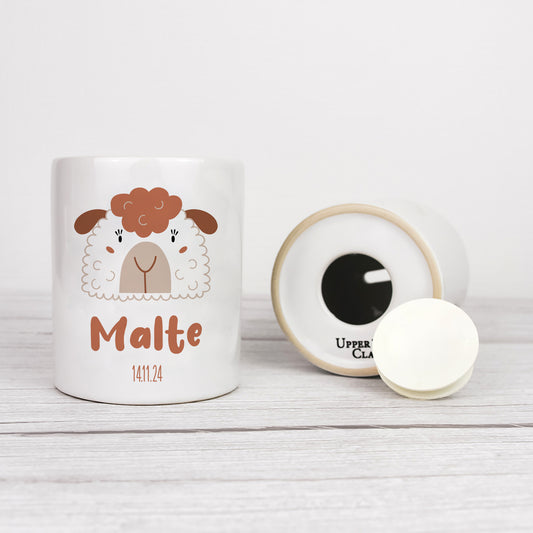 Keramik Spardose mit Name | Wunsch Erfüller grün