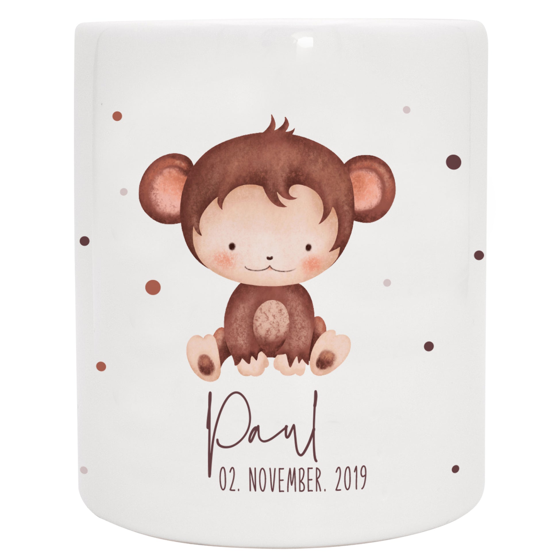Keramik Spardose mit Name + Datum | Tierkinder - Affe