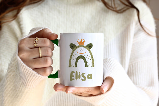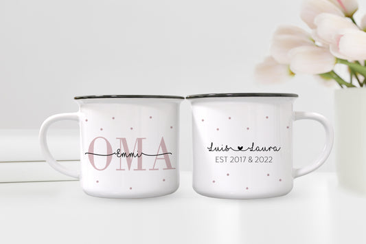 Keramik Emaille-Optik Tasse mit Namen + Enkel Geburtsjahr | Oma
