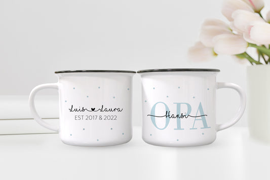 Keramik Emaille-Optik Tasse mit Namen + Enkel Geburtsjahr | Opa