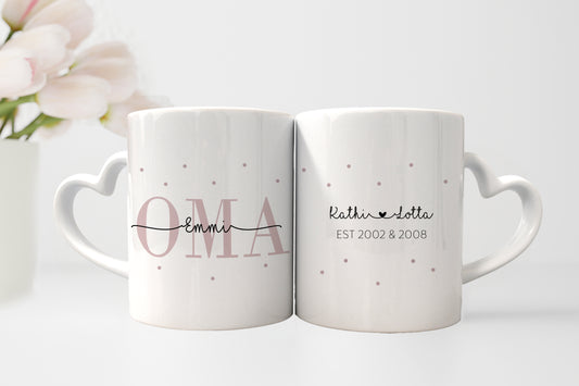 Keramik Herzhenkel Tasse mit Namen + Enkel Geburtsjahr | Oma