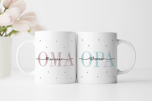 Keramik Tassen-Set mit Namen + Enkel Geburtsjahr | Oma + Opa