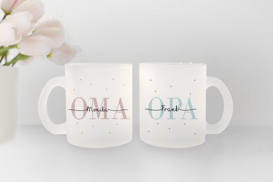 Glas Tassen-Set mit Namen + Enkel Geburtsjahr | Oma + Opa