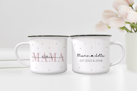 Keramik Emaille-Optik Tasse mit Namen + Kinder Geburtsjahr | Mama