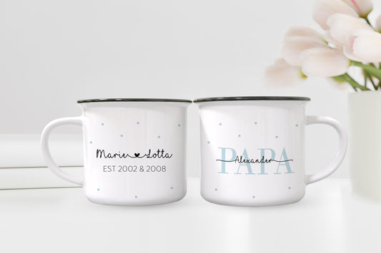 Keramik Emaille-Optik Tasse mit Namen + Kinder Geburtsjahr | Papa