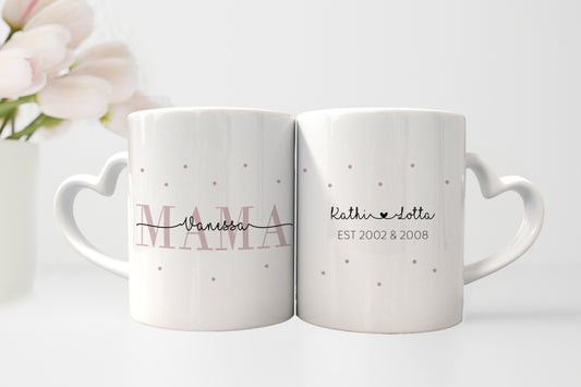 Keramik Herzhenkel Tasse mit Namen + Kinder Geburtsjahr | Mama