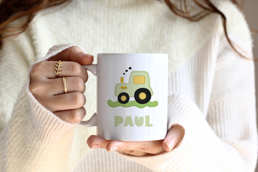 Keramik Tasse mit Namen | Traktor grün