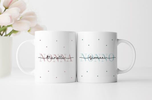 Keramik Tassen-Set mit Namen + Enkel Geburtsjahr | Nonna + Nonno