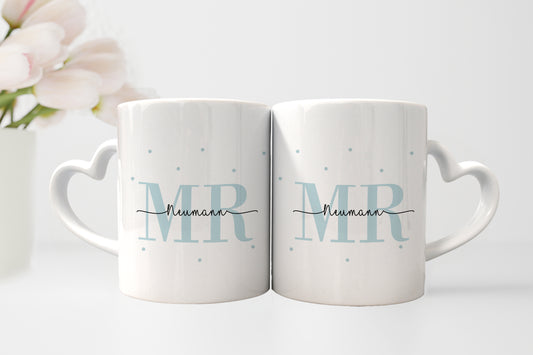 Keramik Herzhenkel Tassen-Set mit Namen + Datum | Mr + Mr
