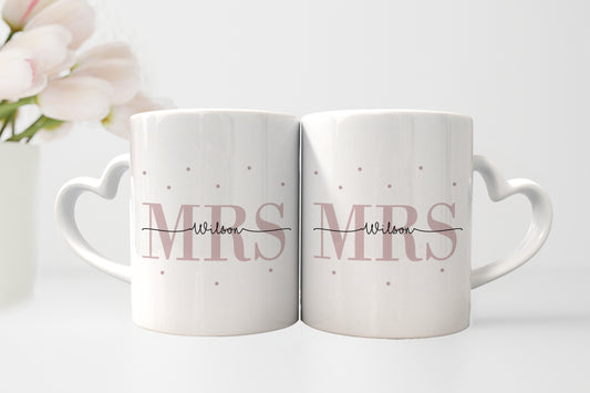 Keramik Herzhenkel Tassen-Set mit Namen + Datum | Mrs + Mrs