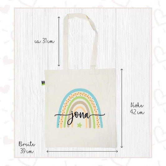 Stofftasche aus Bio- Baumwolle mit Name | Regenbogen bunt