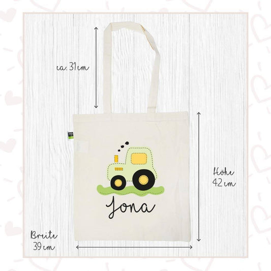 Stofftasche aus Bio- Baumwolle mit Namen | Traktor grün