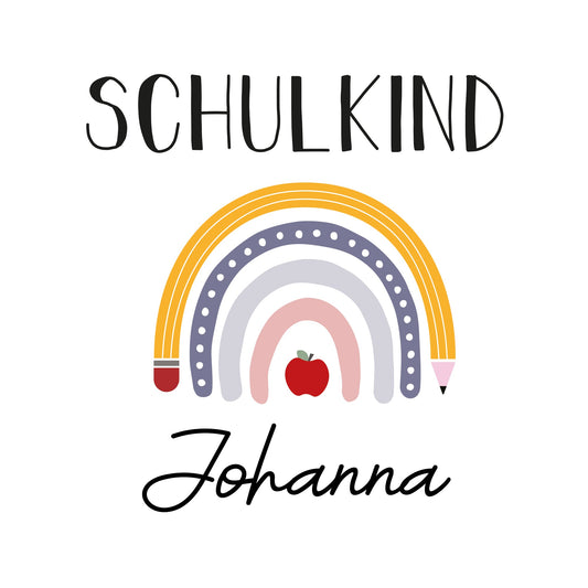 T-Shirt Kinder | Bio-Baumwolle | Schulkind | Regenbogen + Stift + Apfel