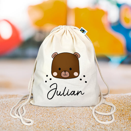 Turnbeutel aus Bio- Baumwolle mit Name | Bärchen