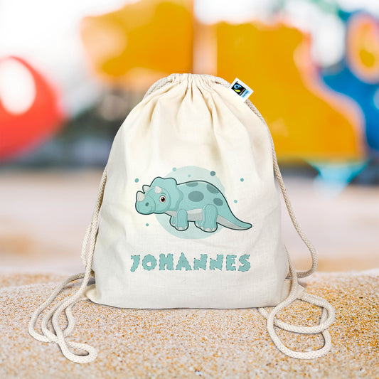 Turnbeutel aus Bio- Baumwolle mit Name | Dino 1 Triceratops