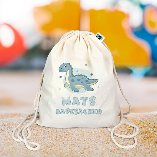 Turnbeutel aus Bio- Baumwolle mit Name | Dino 2 Plesiosaurus