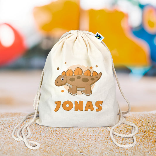Turnbeutel aus Bio- Baumwolle mit Name | Dino 3 Stegosaurus