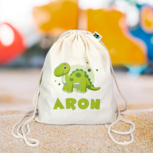 Turnbeutel aus Bio- Baumwolle mit Name | Dino 4 Brachiosaurus