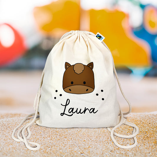 Turnbeutel aus Bio- Baumwolle mit Name | Pferd