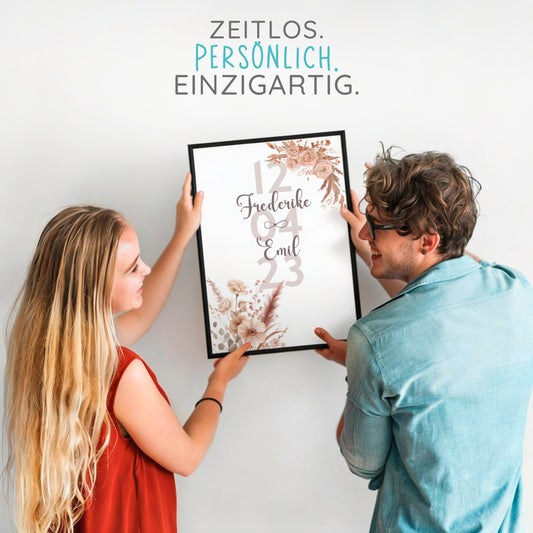 Poster | Boho Blumen mit Namen + Datum