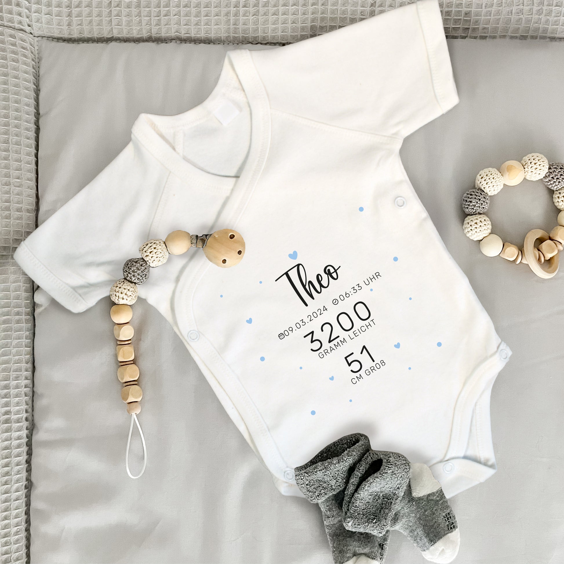 Baby Body Kurzarm mit Name & Geburtsdaten | Wickelbody aus Bio-Baumwolle | Babys Daten