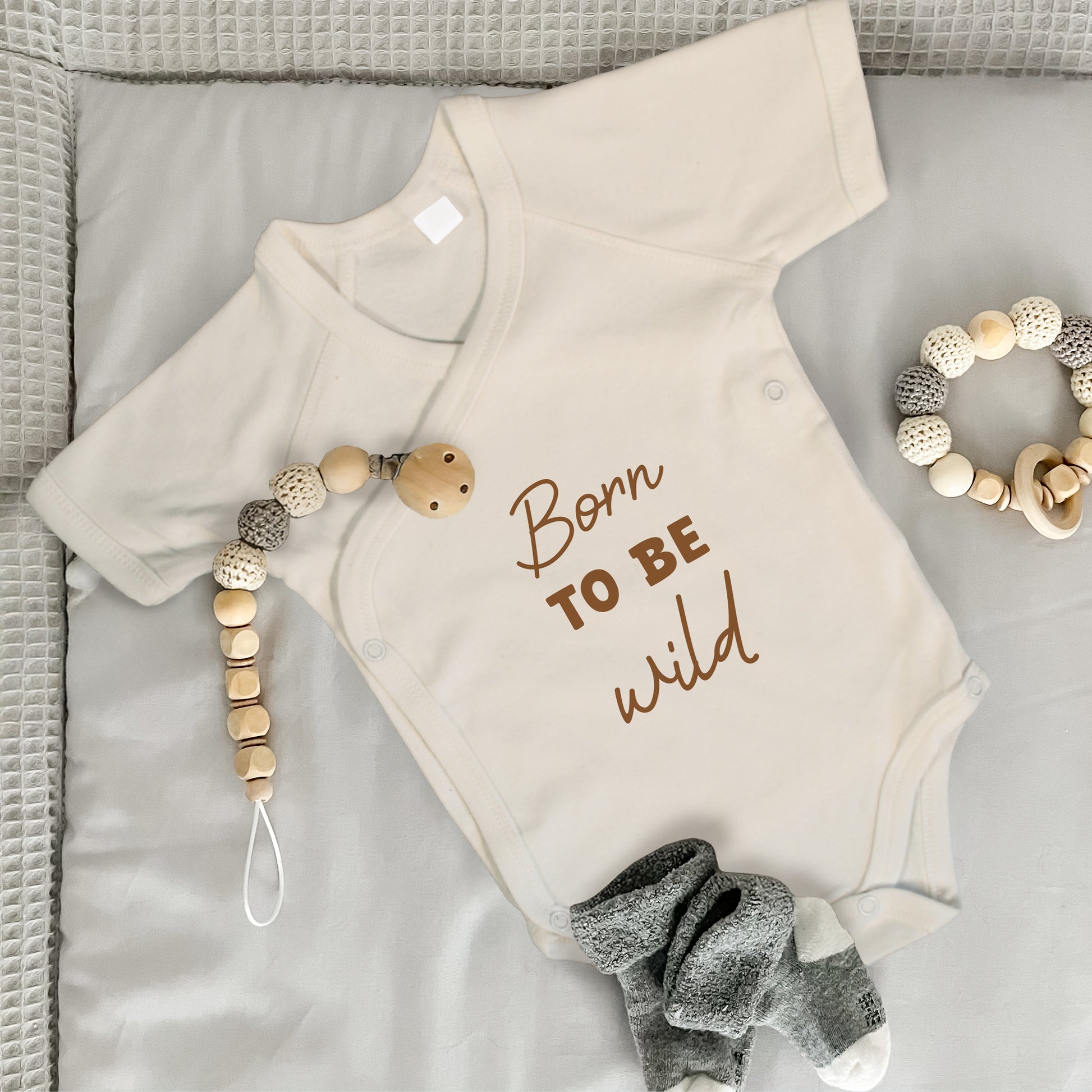 Baby Body Kurzarm mit Spruch | Wickelbody aus Bio-Baumwolle | Born to be wild