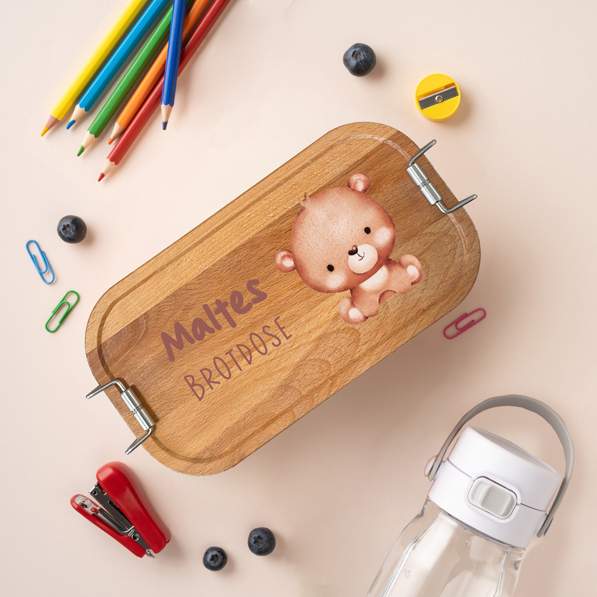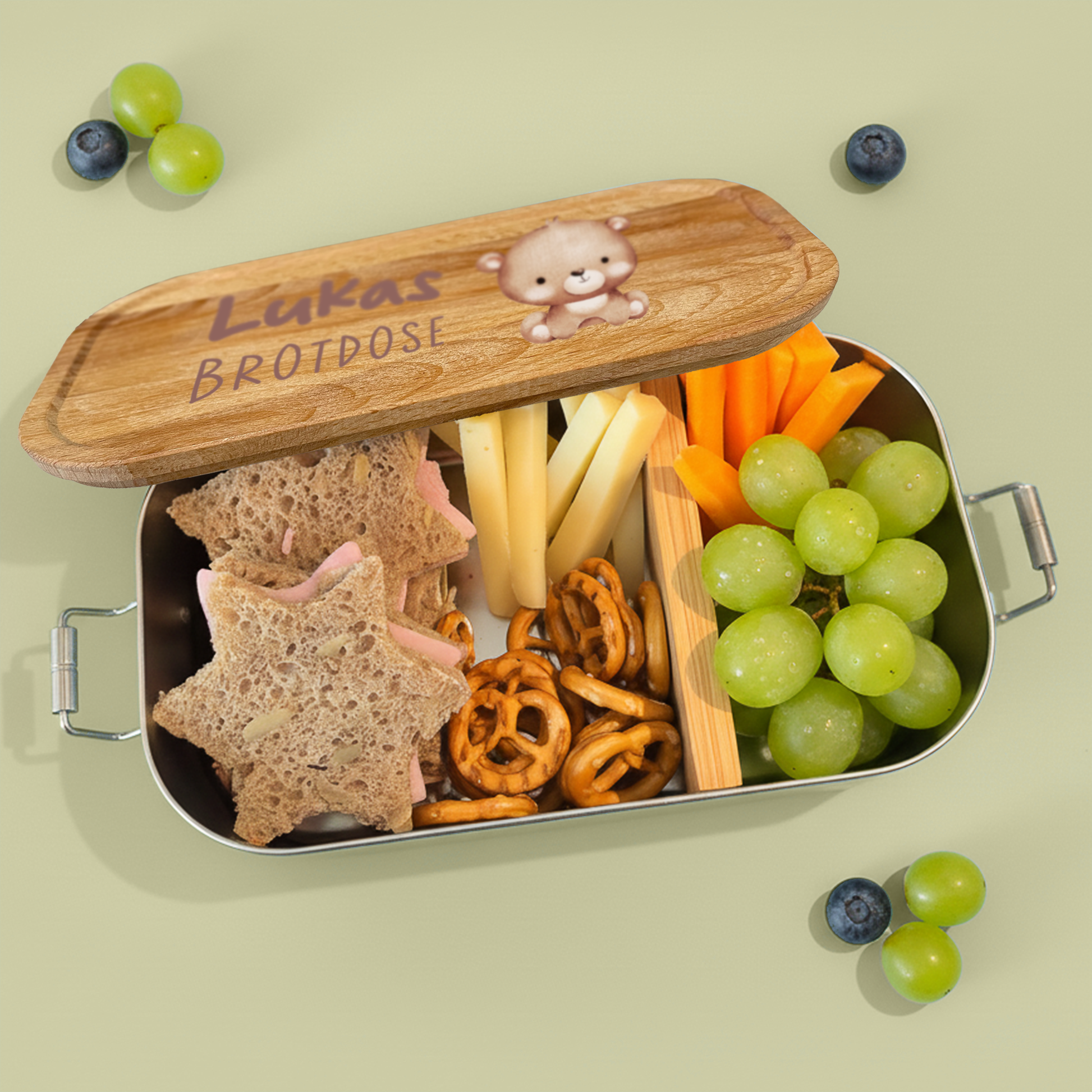 Das Besondere: Die Brotdose wird durch die Personalisierung – z. B. „Leons“ – zu einem ganz persönlichen Geschenk mit Herz. Perfekt zur Einschulung, zum Geburtstag oder als liebevolle Aufmerksamkeit für zwischendurch