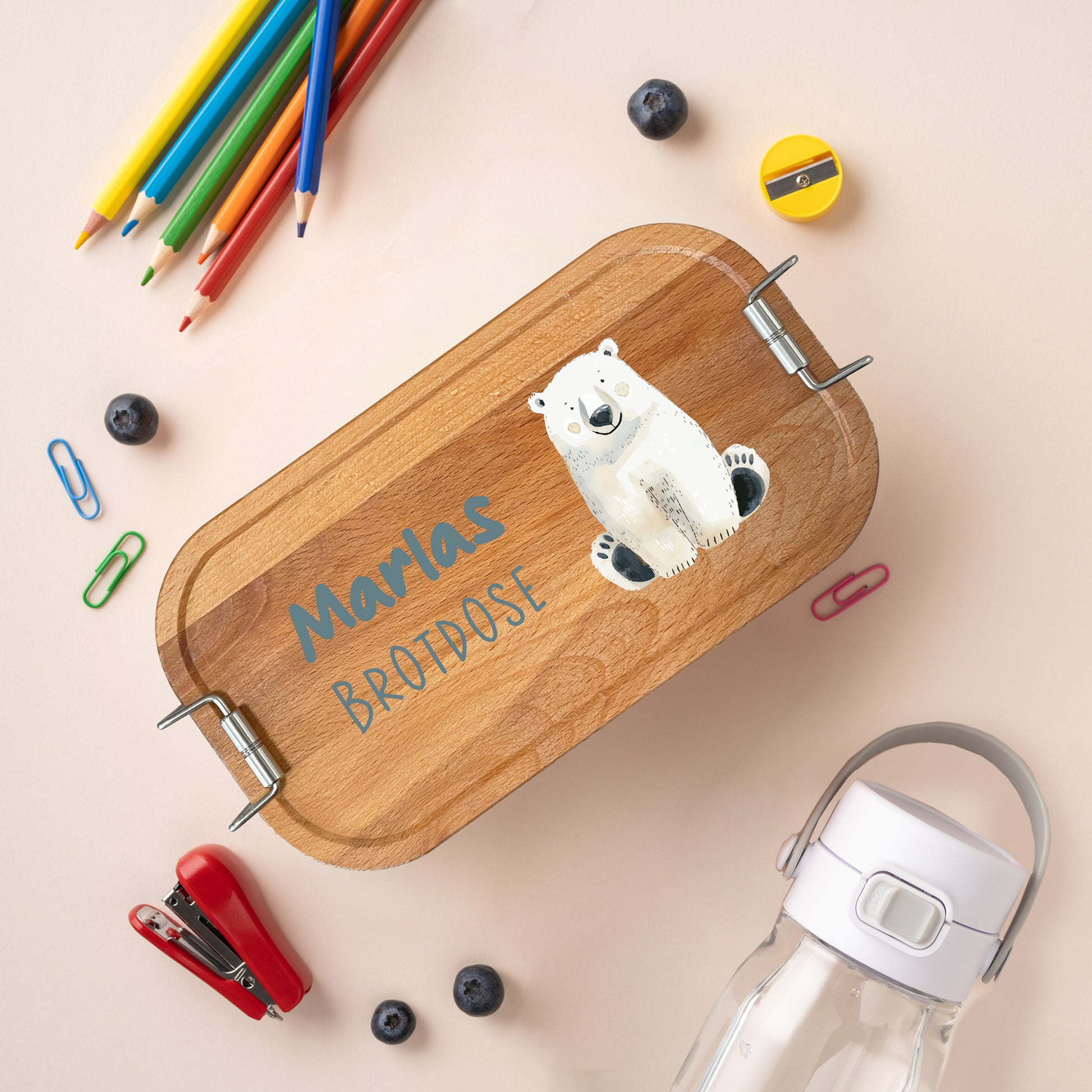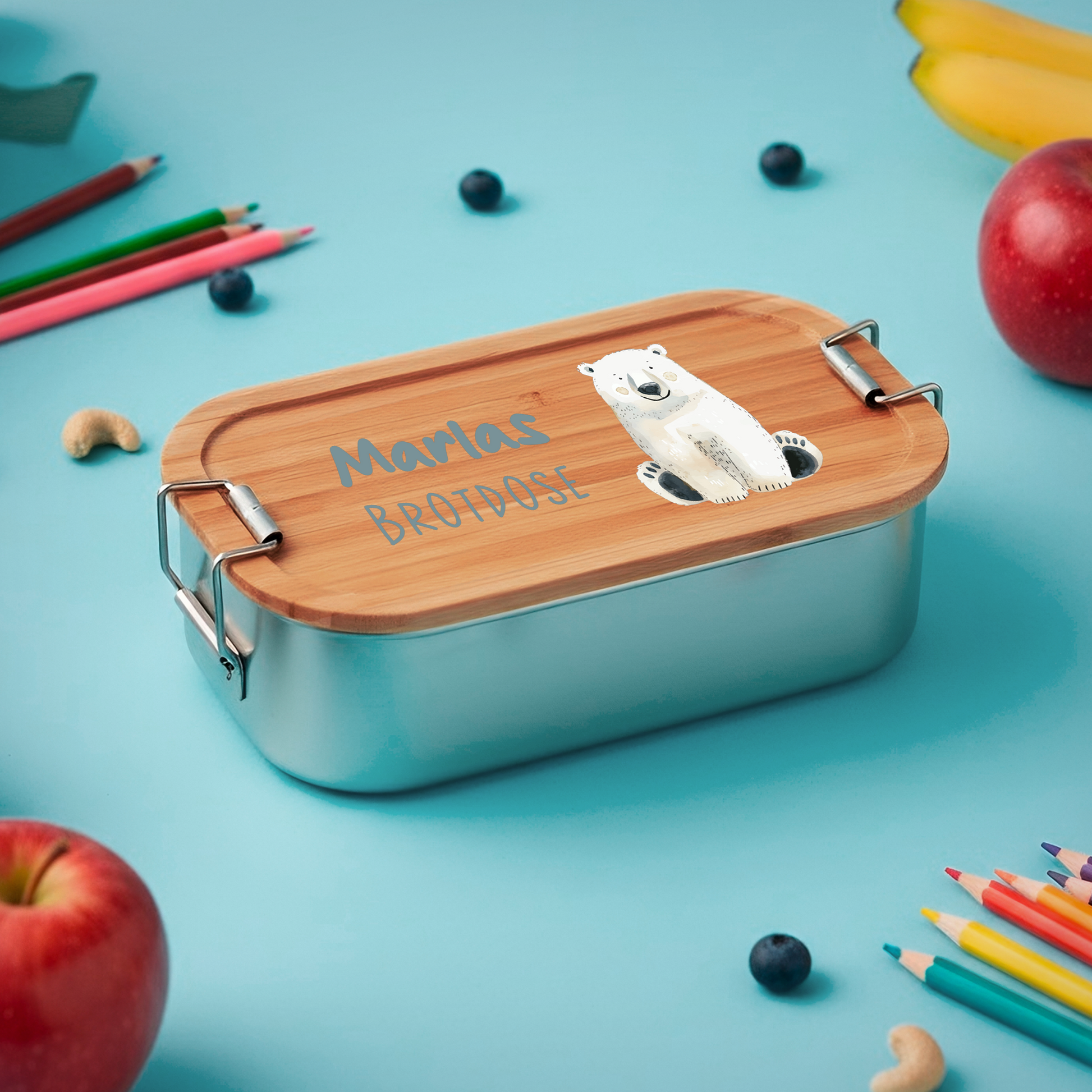 Brotdose | Edelstahl mit Bambus- oder Buchedeckel | 700 ml | Tierparty Eisbär