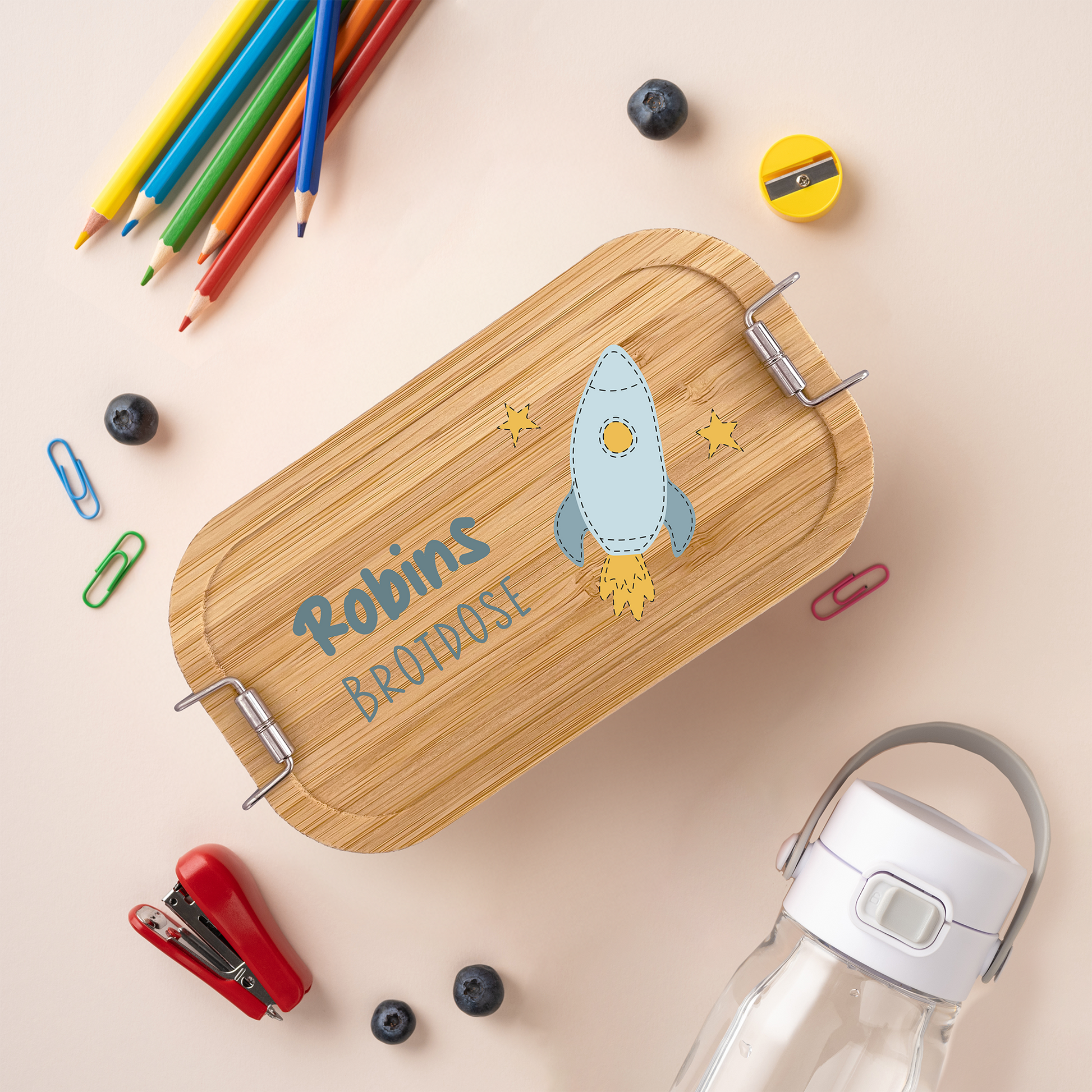 Brotdose | Edelstahl mit Bambusdeckel | 700 ml | Rakete