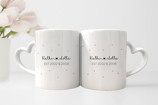 Keramik Herzhenkel Tassen-Set mit Namen + Enkel Geburtsjahr | Oma + Opa