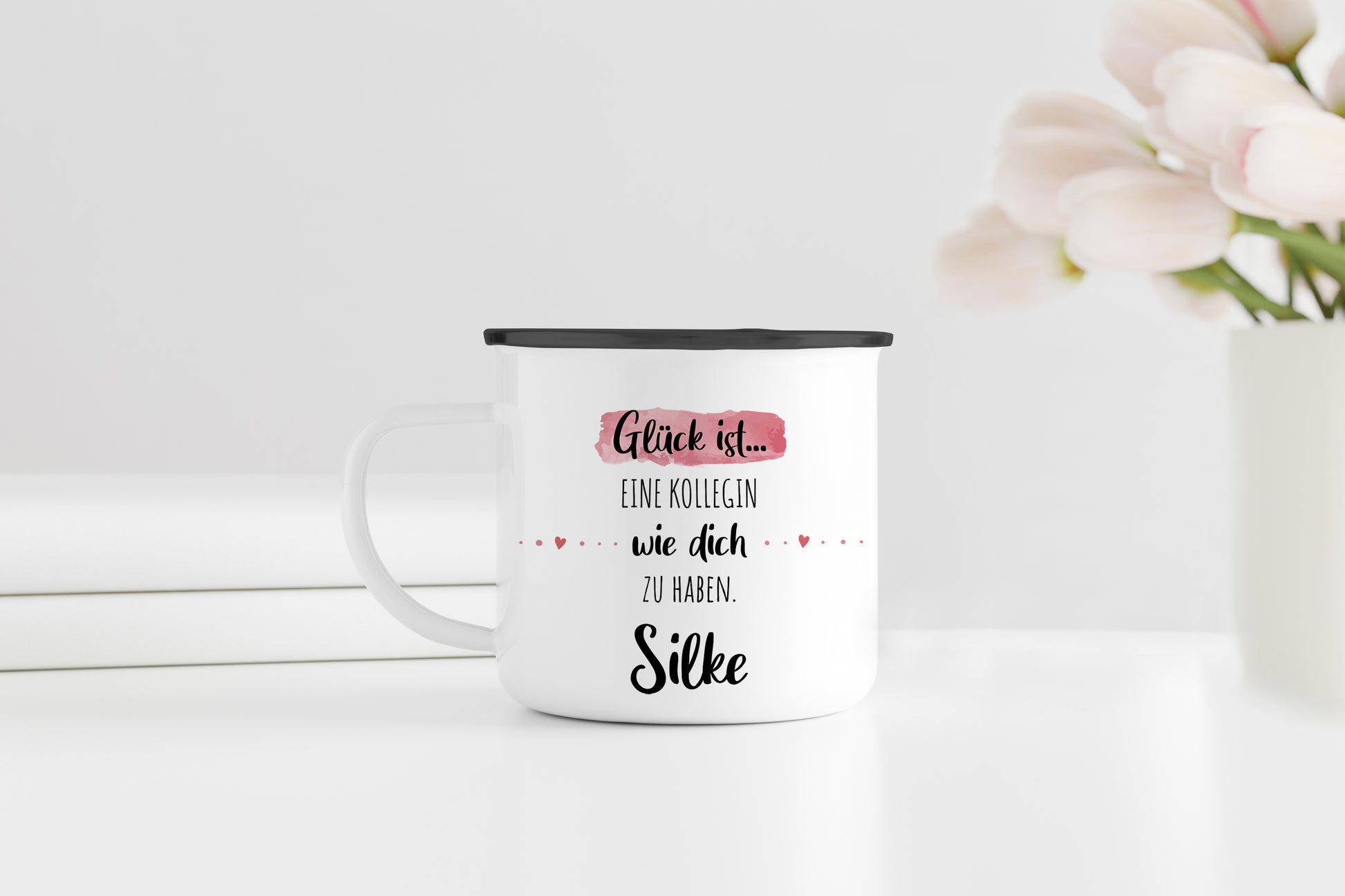 Emaille Tasse mit Namen | Glück ist eine Kollegin wie dich zu haben