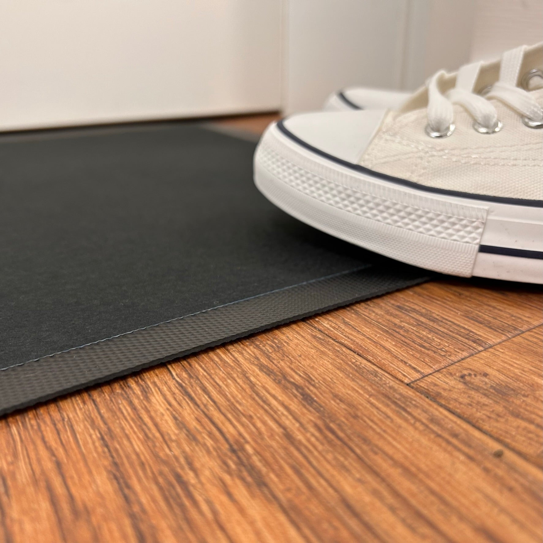 Die Qualität ist außergewöhnlich, da die Oberfläche des Fußabtreters aus hochwertigem und strapazierfähigem Filz besteht. Die Gummi-Unterseite sorgt für einen rutschfesten Halt und der flache Gummirand verhindert Stolperfallen.