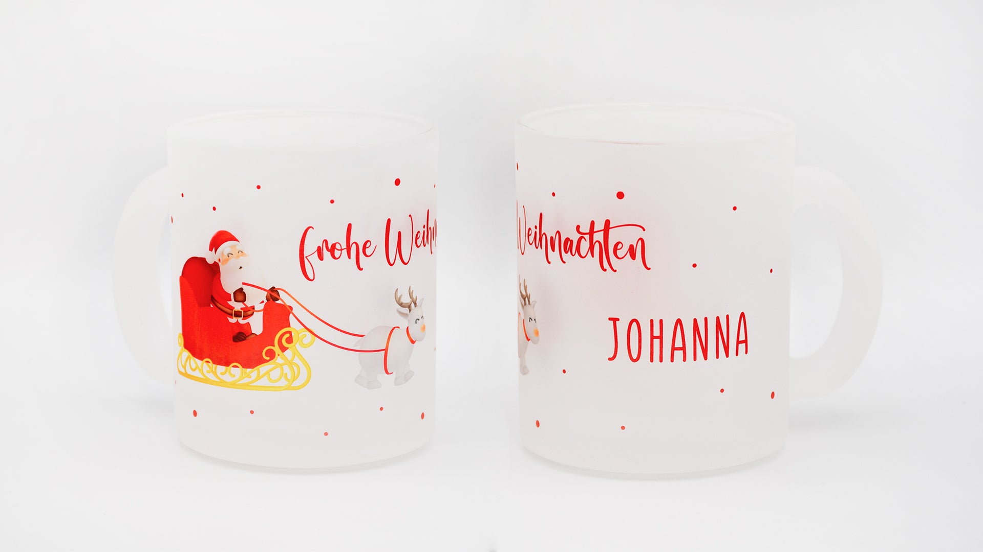 Die Glastasse wird mit deinem Wunschnamen personalisiert und ist ein ideales Geschenk zu Weihnachten, zum Nikolaus oder beim Wichteln.