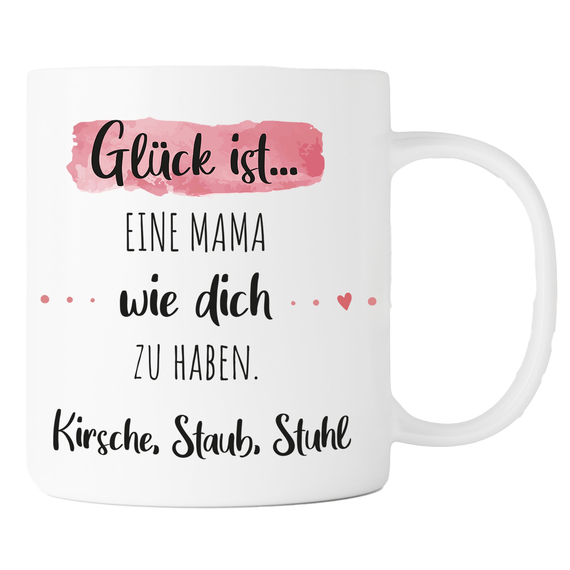 Das Design „Glück ist eine Mama wie dich zu haben“ spricht für sich. Es drückt auf einfache und doch kraftvolle Weise aus, was du für deine Mama empfindest. Dieser Schriftzug ist mehr als nur Worte – er ist ein Ausdruck deiner tiefen Wertschätzung und Liebe. Das Motiv in zarten Rosa-Tönen sorgt für eine weiche, warme Ausstrahlung, die sowohl elegant als auch herzlich wirkt. Es spiegelt das Gefühl der Geborgenheit und Fürsorge wider, das Mütter täglich schenken. Die Kombination aus einer positiven Botschaft und einem sanften Design macht diese Tasse zu einem unvergesslichen Geschenk, das im Alltag immer wieder Freude bereitet.
