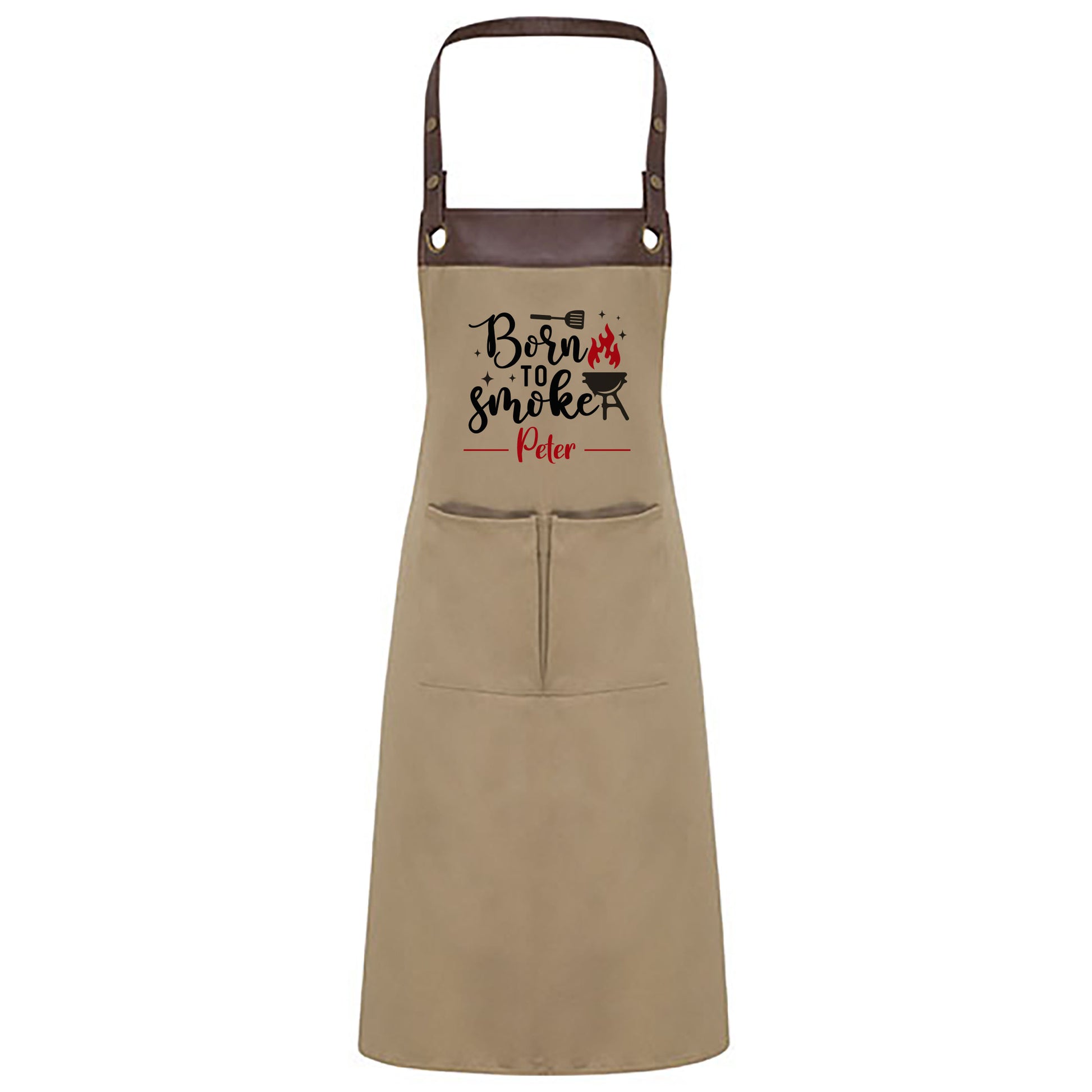 Das humorvolle Design der Schürze sorgt für ein Lächeln, wenn du die Grillzange in die Hand nimmst. Der Aufdruck „Born to smoke“ verleiht der Schürze eine persönliche Note und sorgt dafür, dass du beim Grillen immer im Mittelpunkt stehst. Du kannst die Schürze mit deinem Namen oder einer anderen persönlichen Nachricht versehen, um das Design noch einzigartiger zu machen. Mit dieser Schürze wird jedes Grillfest zu einem besonderen Erlebnis.