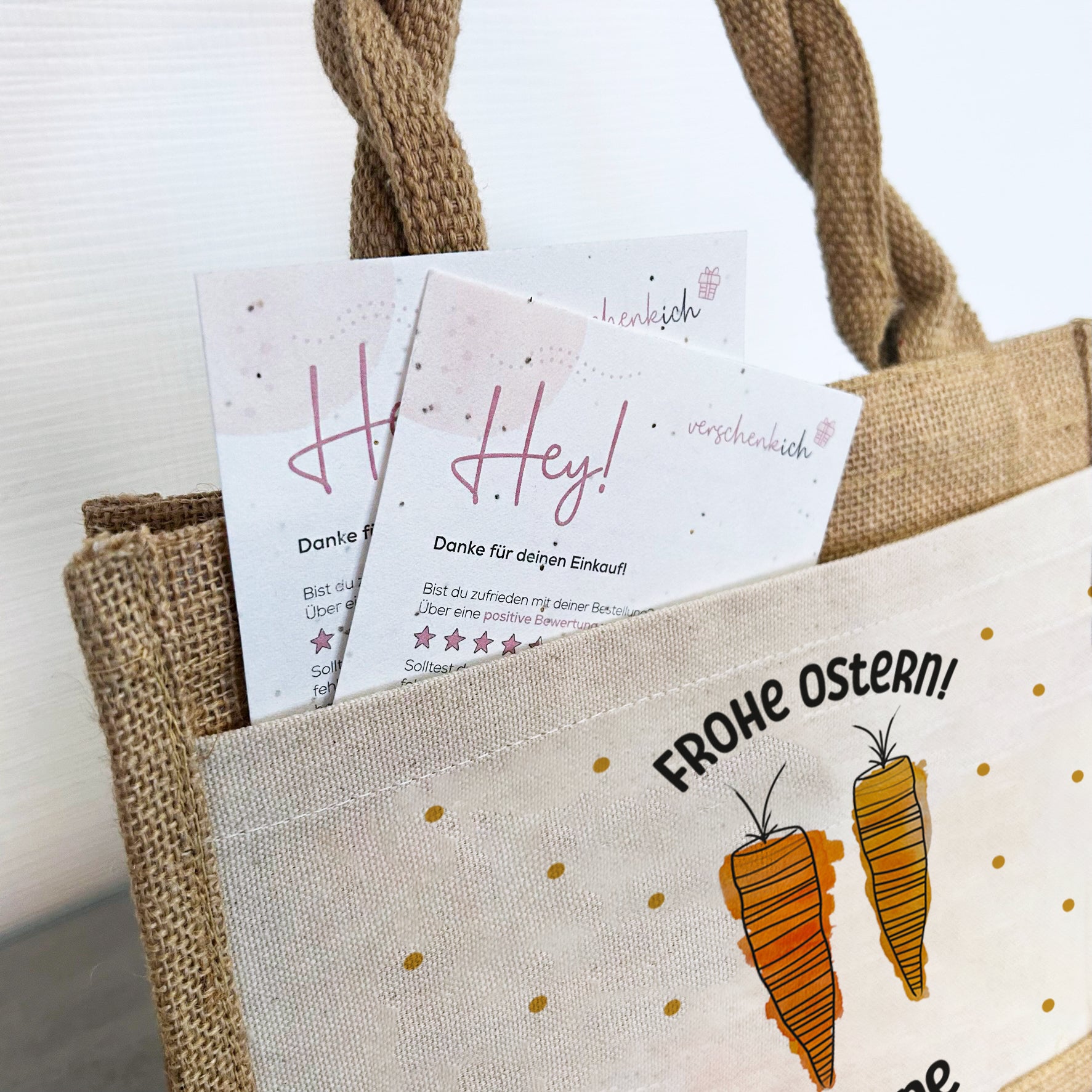 Möchtest du die Ostereiersuche motivierend unterstützen ? Vielleicht wäre eine handliche und personalisierte Jute Tasche genau das richtige, um die gefundenen Ostereier zu sammeln !