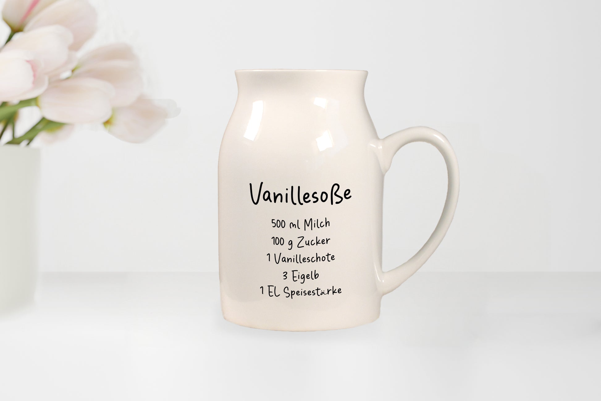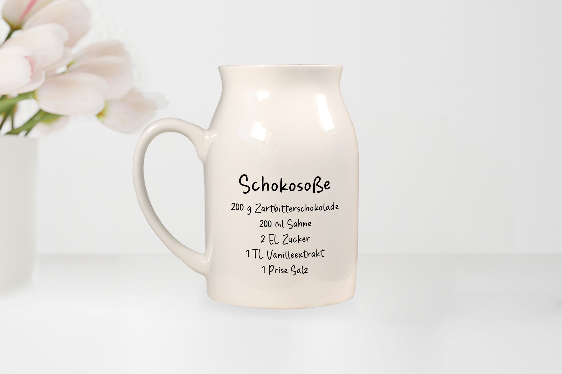 Unser charmantes Keramik-Kännchen mit aufgedrucktem Vanille- und Schokosoßen-Rezept ist mehr als nur hübsch: Es ist praktisch, dekorativ und einfach süß!