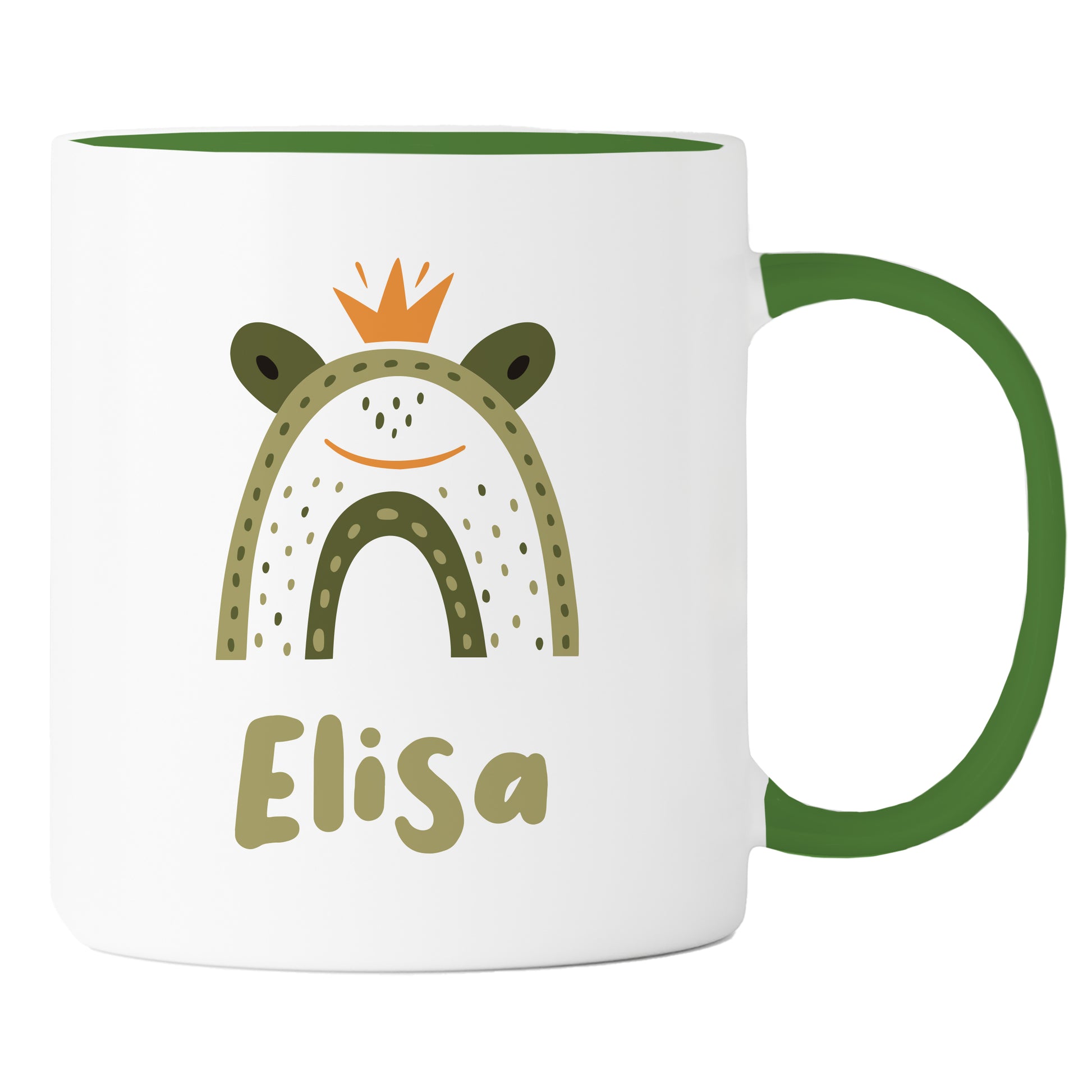 Personalisierte Keramiktasse mit Wunschnamen – Frosch König & grüner Henkel