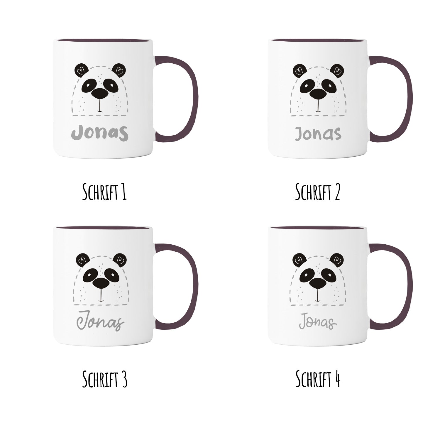 Personalisierte Keramiktasse mit Wunschnamen – Panda & schwarzer Henkel
