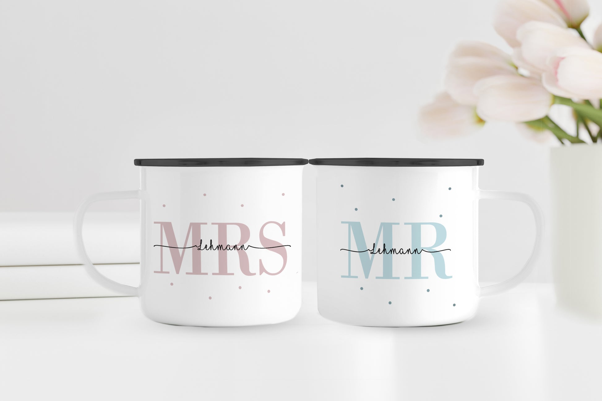 Emaille Tassen-Set mit Namen + Datum | Mrs + Mr