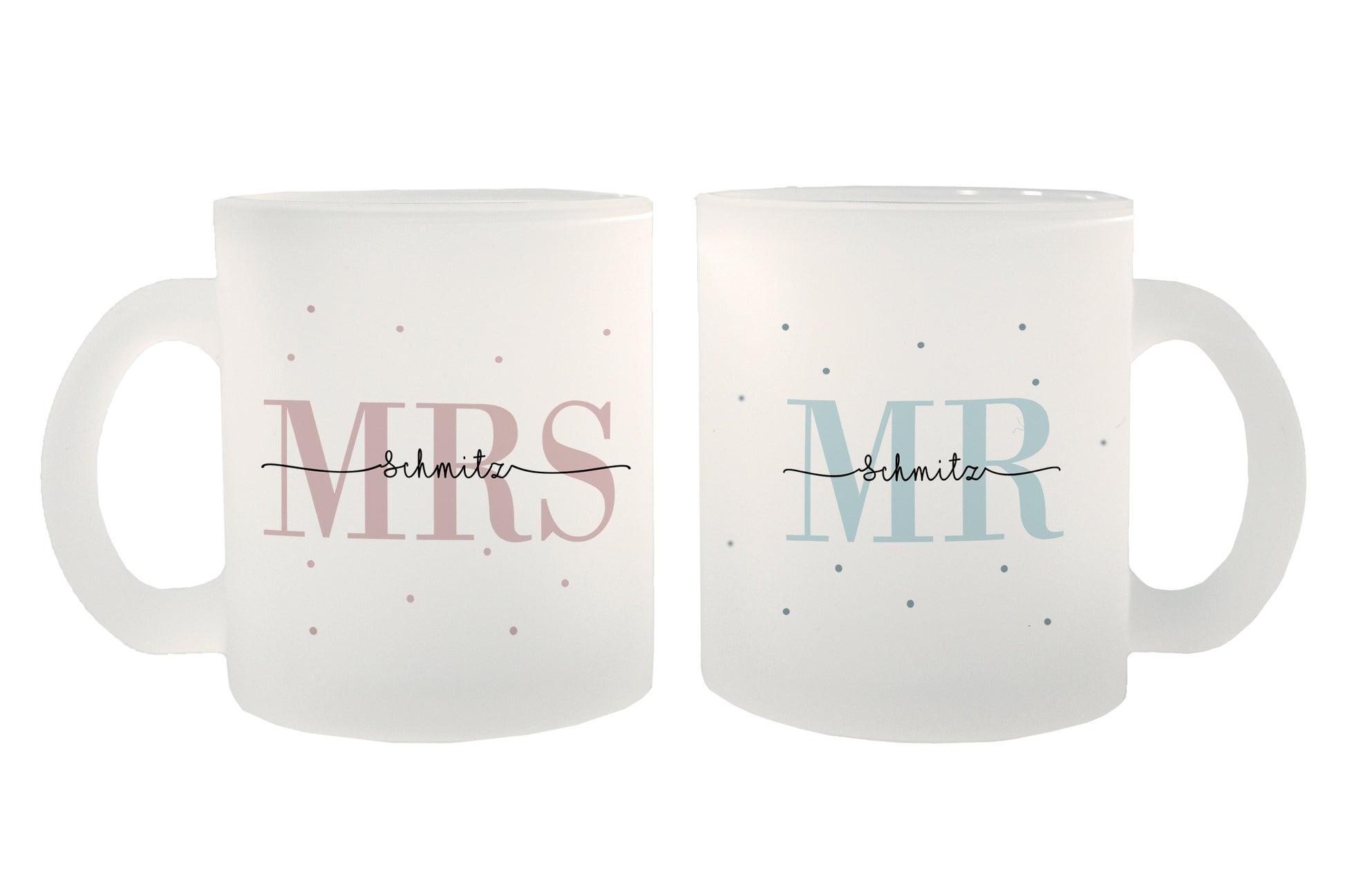 Glas Tassen-Set mit Namen + Datum | Mrs + Mr