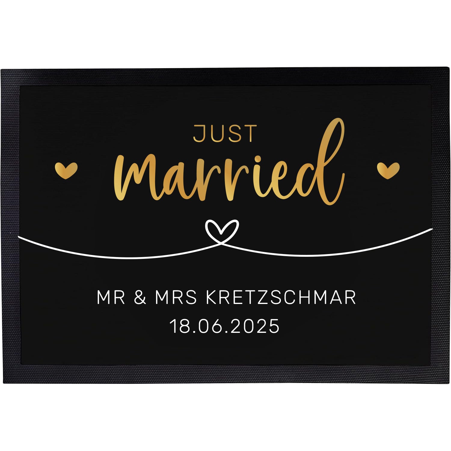 Fußmatte mit Namen + Datum | Just married – Goldverlauf