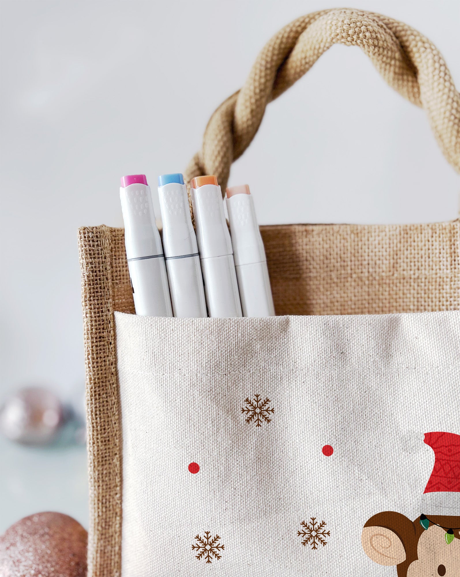Jute Pocket Tasche mit Namen | Weihnachts- Affe