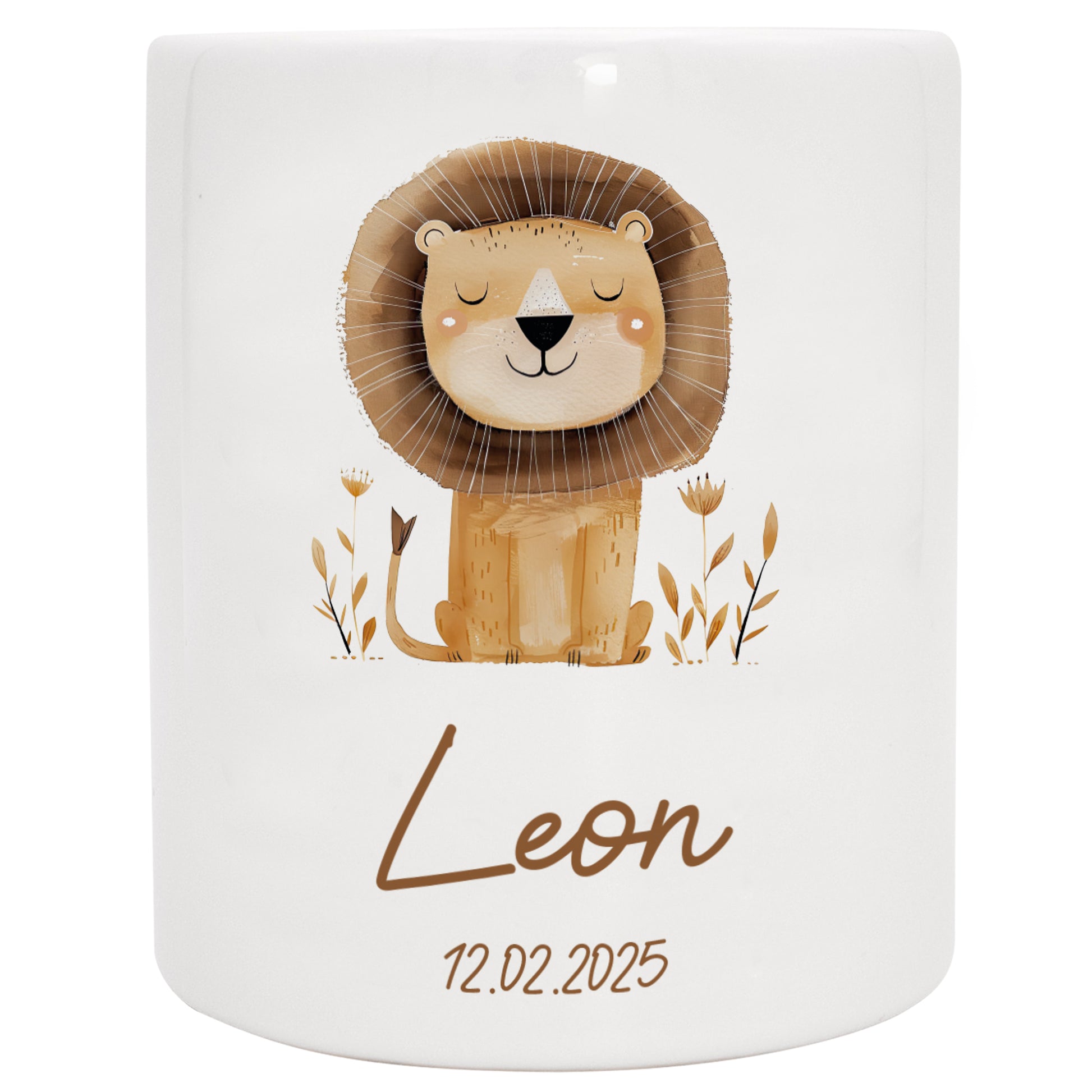 Keramik Spardose mit Name + Datum | Tierparty - Löwe
