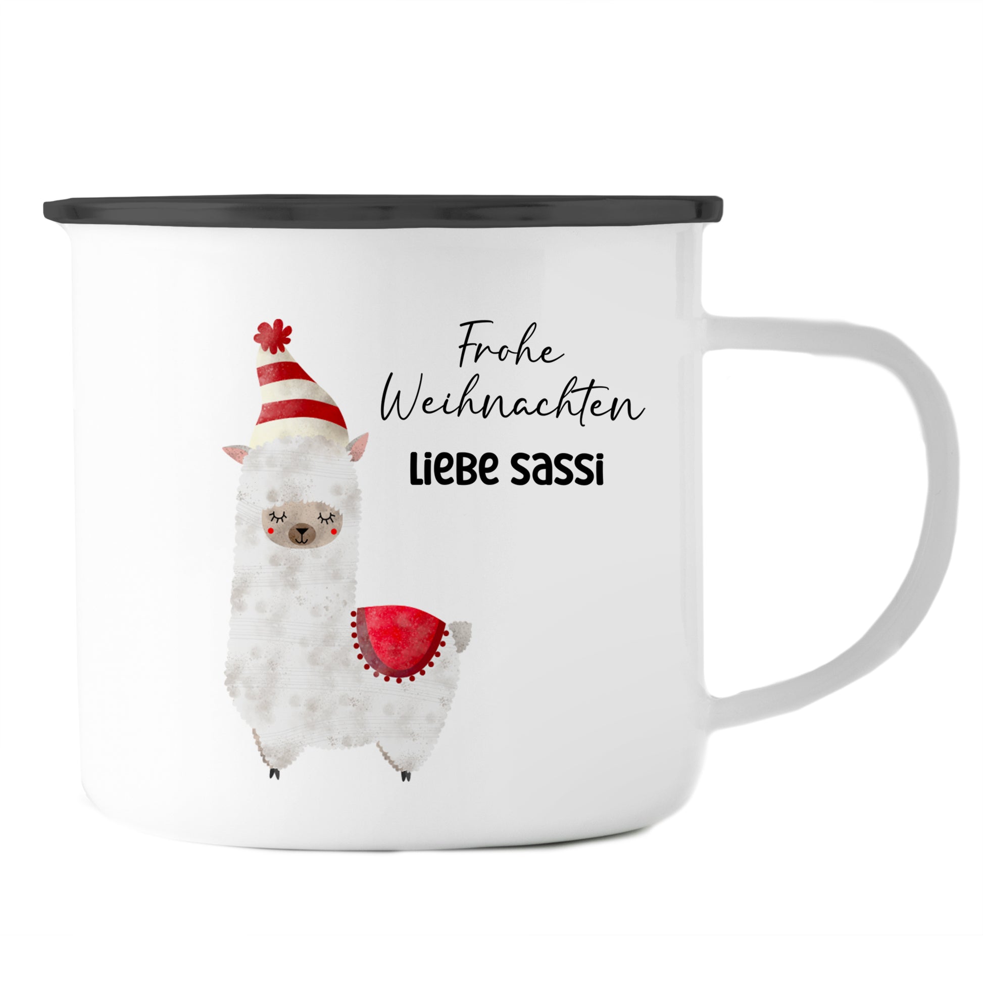 Emaille Tasse mit Name | Alpaka rot