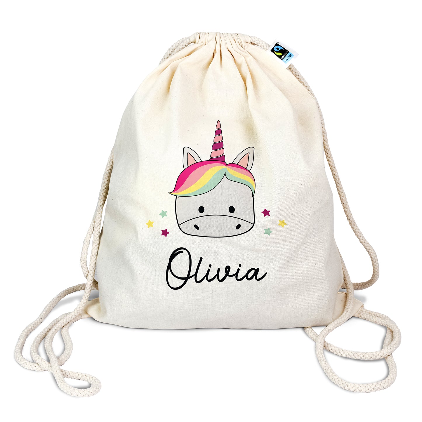 Turnbeutel aus Bio- Baumwolle mit Name | Einhorn