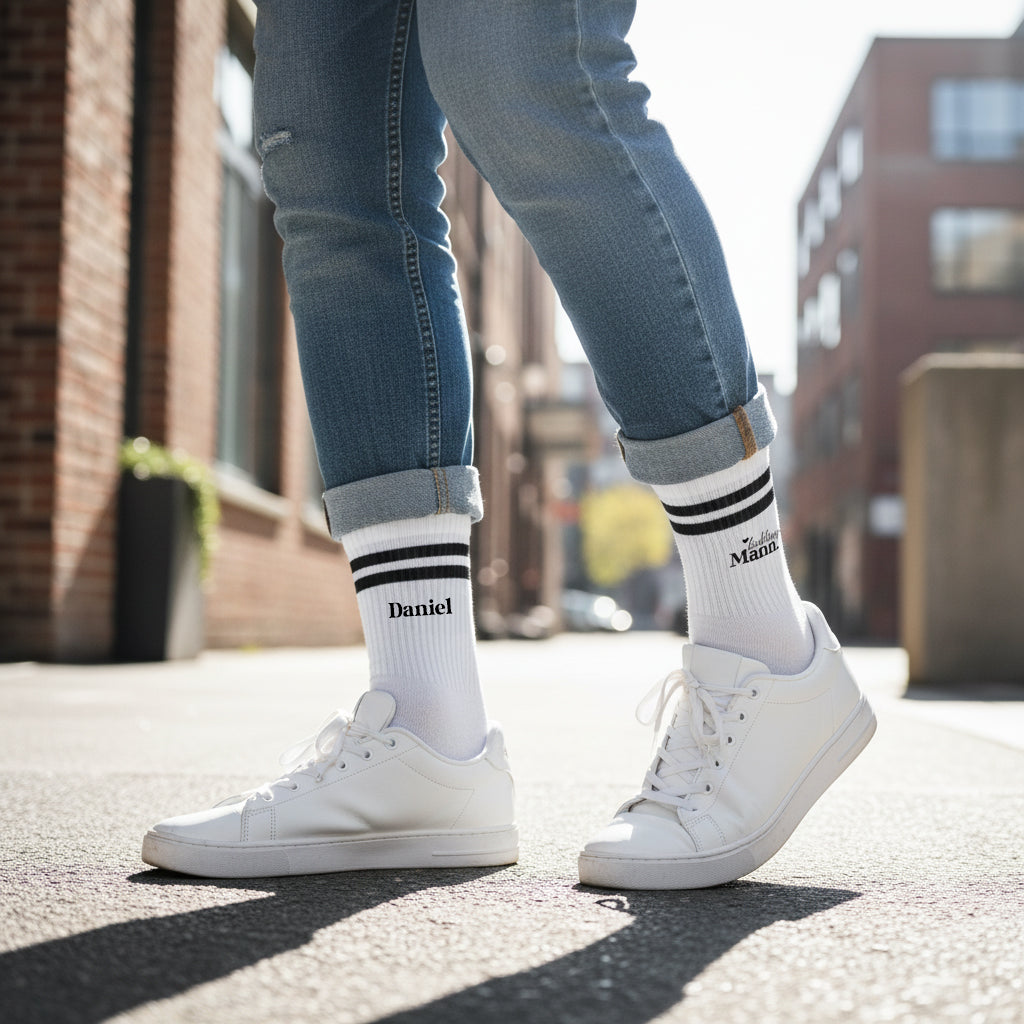 Manchmal braucht es kein großes Geschenk – nur eine kleine Botschaft, die jeden Tag mitläuft. Unsere Statement Tennissocken „LIEBLINGSMANN“ bringen genau dieses Gefühl auf den Punkt: sportlicher Crew-Look, das feste Motiv auf der Außenseite beider Socken – und auf Wunsch wird die Innenseite zusätzlich mit Name (oder kurzem Wunschtext) personalisiert. So wird aus einem praktischen Alltagsstück ein persönlicher Favorit, der beim Anziehen jedes Mal sagt: Du bist mein Mensch.