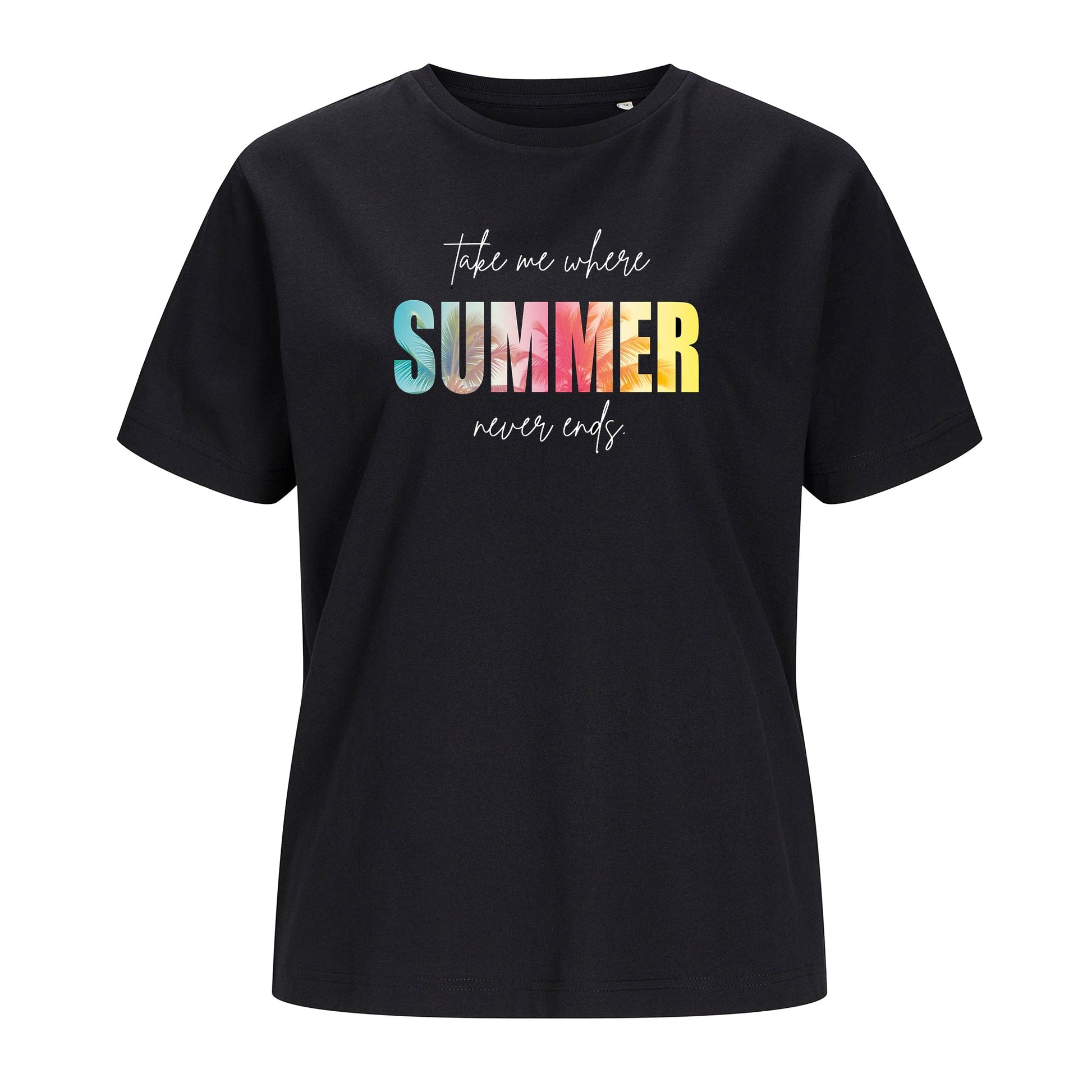 • Shirtfarben: klassisches Schwarz oder frisches Weiß