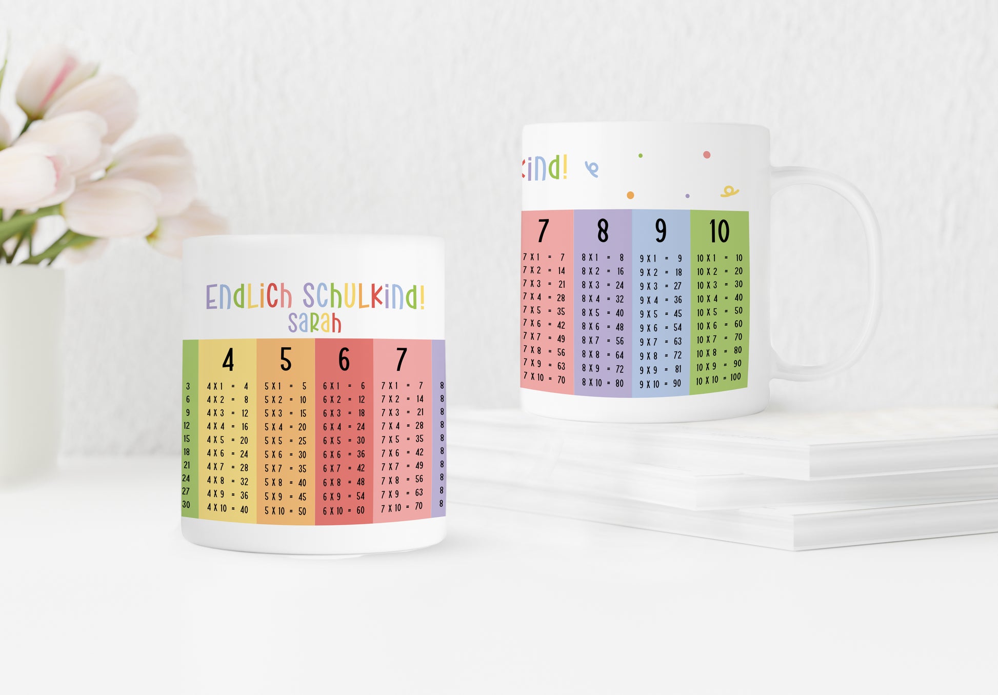 Keramik Tasse mit Namen | Endlich Schulkind - Einmaleins