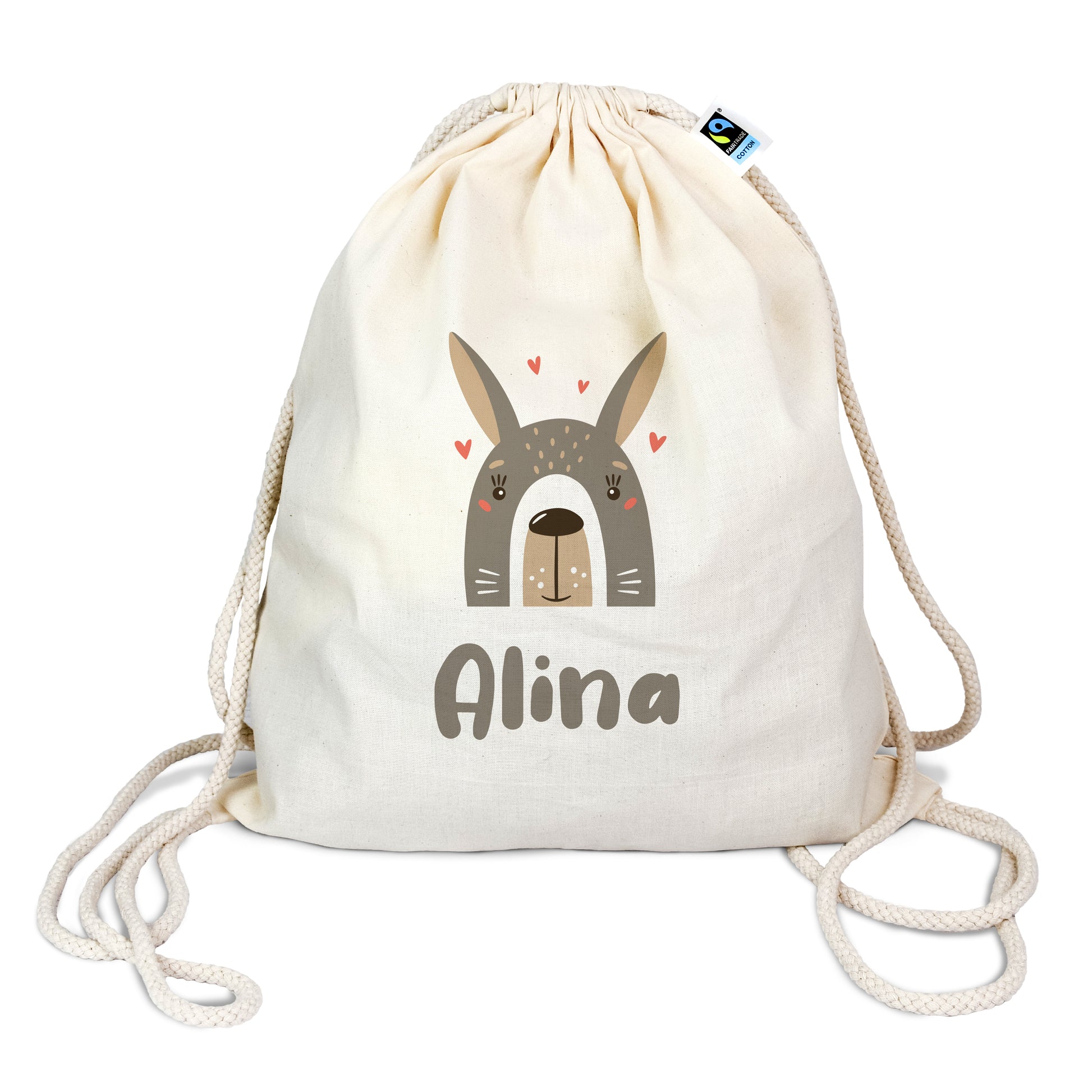 Personalisierter Turnbeutel aus Bio-Baumwolle mit Hase-Motiv – Der ideale Begleiter für kleine Abenteurer